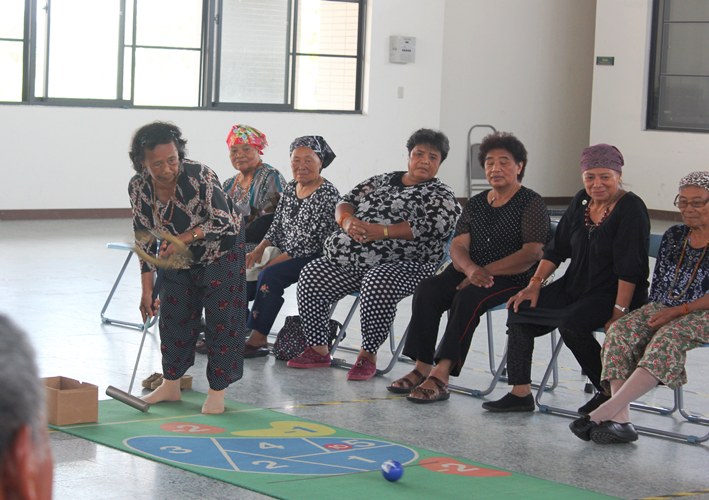 走進新來義活動中心,數十位老人家分坐兩邊,正在進行遊戲比賽。這是新來義每周固定的老人日托課程。來義村原鄉部落,經營老人日間關懷站多年,每周上課、聚會成為部落老人家生活的一部分。今年四月,入住永久屋的來義、義林、丹林三村的長輩們,則可以每周參加生活重建中心承辦的老人關懷據點。