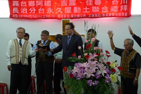 霧台鄉魯凱部落歷史上的大遷移,歷經曲折溝通,終於4月26日踏上重建第一步,族人為即將開工的長治分台永久屋,舉行聯合禮拜儀式,阿禮部落頭目包基成表示,「經過前面溝通的經驗,部落一定要有委任代表,未來有問題才有窗口可以解決」
