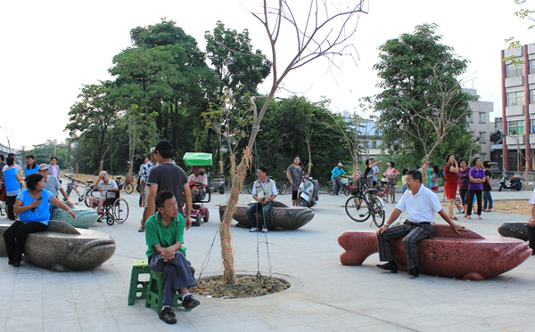 藝術家梁任宏說明,這件作品之所以叫做「歸魚」,是因為水災造成林邊很大的損失,其中相當重要的石斑魚,水災後都游出去了,希望新的車站蓋好之後,我們的產業也可以重新回來,就像我們會從外地搭火車回到我們可愛的故鄉一樣。