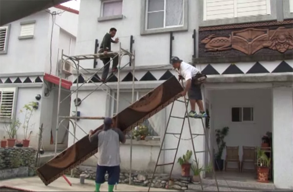 嘉蘭永久屋的美化工作,大部分住戶是包給師傅做,小部分是自己動手做。還有一些住戶是­用換工的方式,也就是幾戶人家組成一個工班,今天做你家的,明天做我家的。換工是部落­的傳統,直到今天,在農忙的時候,部落的老人家還是以換工的方式,互相幫忙。