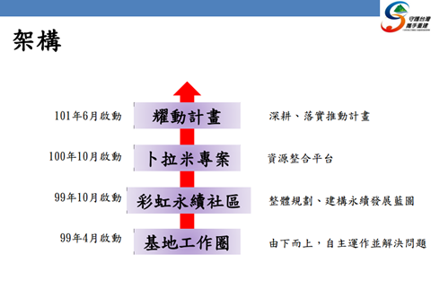 行政院重建會主任秘書張恆裕提到,政府針對永久屋提出了「耀動計畫」,從今年6月開始執行。計畫項目約略可分為三種,包含行政院農委會提出的永久屋基地農業發展計畫;交通部觀光局提出的永久屋基地觀光產業行銷推廣計畫、行政院原民會提出原住民永久屋基地產業發展計畫。