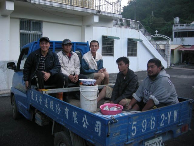 用過早餐的工班出發上平台。工班中,也有曾援建瑪家農場永久屋的排灣族年輕人。