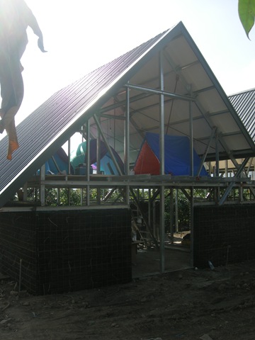 填土前,架設牆壁的是幾位勤和村民。因為牆體使用泥土,據建築師表示,一兩個月後外牆便會長出草來。村民戲稱「這裡以前有種過薑,搞不好會長出生薑!」「我要給它種愛玉啦!」