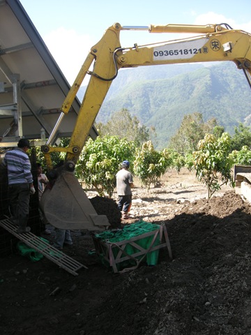 由工人們置放袋子、怪手填土,設計師們變盡方法讓施作過程更簡單省時。